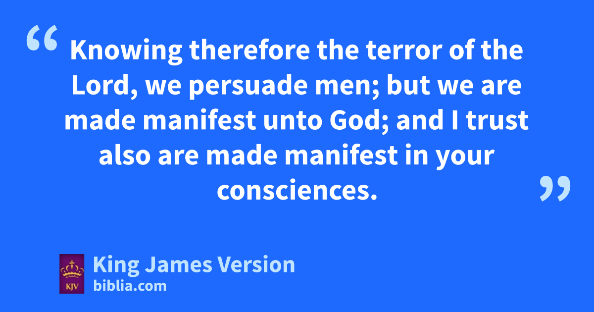 9 Wherefore we ||labour, that, whether present or absent, we may be paccepted of him. 10 For we must all appear qbefore the judgment seat of Christ; rthat every one may receive the things done in his body, according to that he hath done, whether it be good or bad. 11 Knowing therefore sthe terror of the Lord, we persuade men; but twe are made manifest unto God; and I trust also are tmade manifest in your consciences. 12 For we ucommend not ourselves vagain unto you, but give you woccasion xto glory on our behalf, that ye may have somewhat to answer them which glory †in appearance, and not in heart. 13 For whether we be ybeside ourselves, it is to God: or whether we zbe sober, it is for your cause. 14 For athe love of Christ constraineth us; because we thus judge, that bif one died for all, then were all dead: 15 And that he died for all, cthat they which live should not henceforth live unto themselves, but unto him which died for them, and rose again. 16 Wherefore henceforth dknow we no man eafter the flesh: yea, though we have known Christ eafter the flesh, yet now henceforth fknow we him no more. 17 Therefore if any man be gin Christ, ||he is ha new creature: iold things are passed away; behold, all things are become new. 18 And all things are of God, kwho hath reconciled us to himself by Jesus Christ, and hath given to us lthe ministry of mreconciliation; 19 To wit, that nGod was in Christ, kreconciling nnthe world unto himself, not oimputing their trespasses unto them; and hath †committed unto us the word of mreconciliation. 20 Now then pwe are ambassadors for Christ, as qthough God did beseech you by us: we pray you in Christ’s stead, kbe ye reconciled to God. 21 For rhe hath made him to be sin for us, who knew no sin; that we might be made sthe righteousness of God in him.