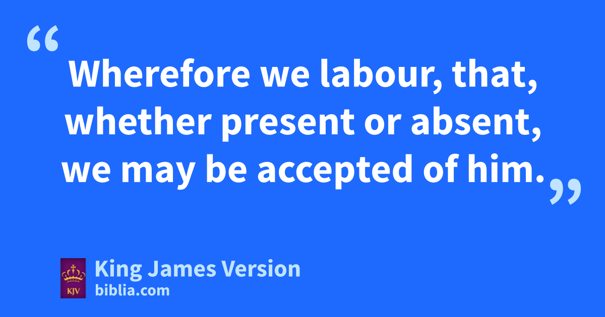 9 Wherefore we ||labour, that, whether present or absent, we may be paccepted of him. 10 For we must all appear qbefore the judgment seat of Christ; rthat every one may receive the things done in his body, according to that he hath done, whether it be good or bad. 11 Knowing therefore sthe terror of the Lord, we persuade men; but twe are made manifest unto God; and I trust also are tmade manifest in your consciences. 12 For we ucommend not ourselves vagain unto you, but give you woccasion xto glory on our behalf, that ye may have somewhat to answer them which glory †in appearance, and not in heart. 13 For whether we be ybeside ourselves, it is to God: or whether we zbe sober, it is for your cause. 14 For athe love of Christ constraineth us; because we thus judge, that bif one died for all, then were all dead: 15 And that he died for all, cthat they which live should not henceforth live unto themselves, but unto him which died for them, and rose again. 16 Wherefore henceforth dknow we no man eafter the flesh: yea, though we have known Christ eafter the flesh, yet now henceforth fknow we him no more. 17 Therefore if any man be gin Christ, ||he is ha new creature: iold things are passed away; behold, all things are become new. 18 And all things are of God, kwho hath reconciled us to himself by Jesus Christ, and hath given to us lthe ministry of mreconciliation; 19 To wit, that nGod was in Christ, kreconciling nnthe world unto himself, not oimputing their trespasses unto them; and hath †committed unto us the word of mreconciliation. 20 Now then pwe are ambassadors for Christ, as qthough God did beseech you by us: we pray you in Christ’s stead, kbe ye reconciled to God. 21 For rhe hath made him to be sin for us, who knew no sin; that we might be made sthe righteousness of God in him.