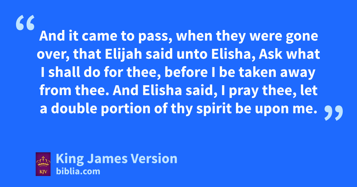 2 And it came to pass, when the Lord would atake up Elijah into heaven by a whirlwind, that Elijah went with bElisha from cGilgal. 2 And Elijah said unto Elisha, dTarry here, I pray thee; for the Lord hath sent me to eBeth-el. And Elisha said unto him, fAs the Lord liveth, and as thy soul liveth, I will not leave thee. So they went down to Beth-el. 3 And gthe sons of the prophets that were at Beth-el came forth to Elisha, and said unto him, Knowest thou that the Lord will take away thy master hfrom thy head to day? And he said, Yea, I know it; hold ye your peace. 4 And Elijah said unto him, Elisha, tarry here, I pray thee; for the Lord hath sent me to iJericho. And he said, fAs the Lord liveth, and as thy soul liveth, I will not leave thee. So they came to Jericho. 5 And the sons of the prophets that were at Jericho came to Elisha, and said unto him, Knowest thou that the Lord will take away thy master hfrom thy head to day? And he answered, Yea, I know it; hold ye your peace. 6 And Elijah said unto him, Tarry, I pray thee, here; for the Lord hath sent me to Jordan. And he said, fAs the Lord liveth, and as thy soul liveth, I will not leave thee. And they two went on. 7 And fifty men of the sons of the prophets went, and stood †to view afar off: and they two stood by Jordan. 8 And Elijah took khis mantle, and wrapped it together, and smote the waters, and mthey were divided hither and thither, so that they two went over on dry ground. 9 And it came to pass, when they were gone over, that Elijah said unto Elisha, Ask what I shall do for thee, before I be taken away from thee. And Elisha said, I pray thee, let na double portion of thy spirit be upon me. 10 And he said, †Thou hast asked a hard thing: nevertheless, if thou see me when I am taken from thee, it shall be so unto thee; but if not, it shall not be so. 11 And it came to pass, as they still went on, and talked, that, behold, there appeared oa chariot of fire, and horses of fire, and parted them both asunder; and pElijah went up by a whirlwind into heaven. 12 And Elisha saw it, and he cried, qMy father, my father, the chariot of Israel, and the horsemen thereof. And he saw him no more: and he took hold of his own clothes, and rrent them in two pieces. 13 He took up also the mantle of Elijah that fell from him, and went back, and stood by the †bank of Jordan; 14 And he took the mantle of Elijah that fell from him, and smote the waters, and said, Where is the Lord God of Elijah? and when he also had smitten the waters, sthey parted hither and thither: and Elisha went over. 15 And when the sons of the prophets which were tto view at Jericho saw him, they said, The spirit of Elijah doth rest on Elisha. And they came to meet him, and bowed themselves to the ground before him. 16 And they said unto him, Behold now, there be with thy servants fifty †strong men; let them go, we pray thee, and seek thy master: lest peradventure uthe Spirit of the Lord hath taken him up, and cast him upon †some mountain, or into some valley. And he said, Ye shall not send. 17 And when they urged him xtill he was ashamed, he said, Send. They sent therefore fifty men; and they sought three days, but found him not. 18 And when they came again to him, (for he tarried at Jericho,) he said unto them, Did I not say unto you, Go not?