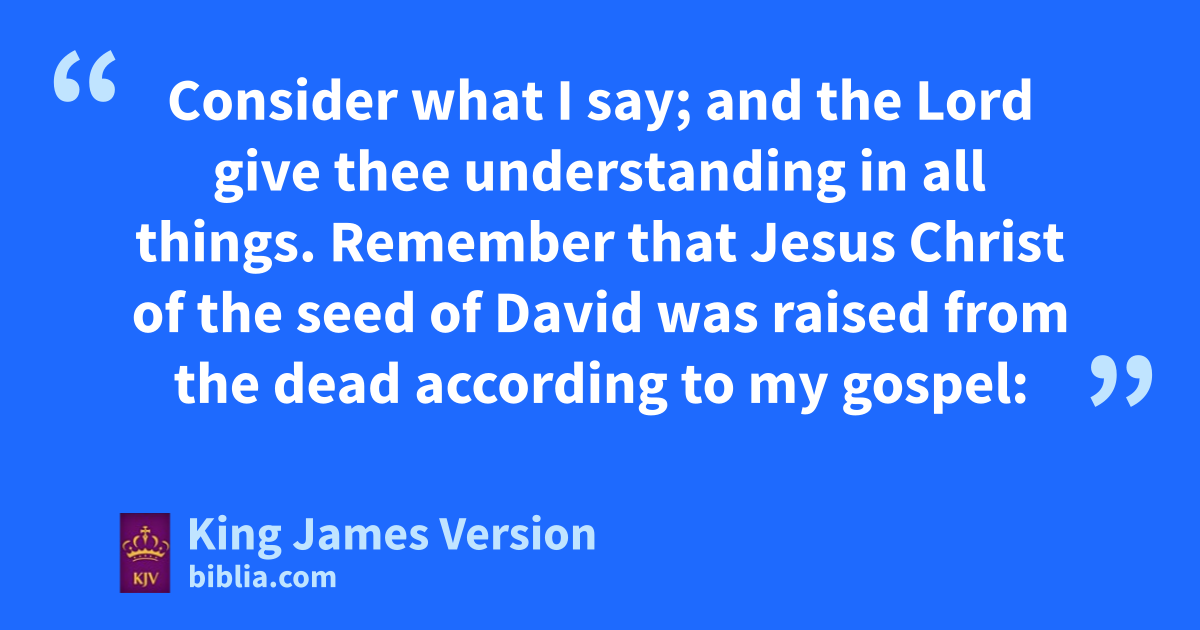 2 Thou therefore, amy son, bbe strong in the grace that is in Christ Jesus. 2 And the things cthat thou hast heard of me ||among many witnesses, the same decommit thou to ffaithful men, who shall be gable to teach others also. 3 Thou therefore hendure hardness, as ia good soldier of Jesus Christ. 4 No jman that warreth kentangleth himself with the affairs of this life; that he may please him who hath chosen him to be a soldier. 5 And lif a man also strive for masteries, yet is he not llcrowned, except he strive lawfully. 6 m||The husbandman that laboureth must be first partaker of the fruits. 7 Consider what I say; and mmthe Lord give thee understanding in all things. 8 Remember that Jesus Christ nof the seed of David nnwas raised from the dead oaccording to my gospel: 9 pWherein hI suffer trouble, as an evil doer, qeven unto bonds; but rthe word of God is not bound. 10 Therefore I endure all things sfor tthe elect’s sakes, that they may also obtain uthe salvation which is in Christ Jesus with veternal glory. 11 wIt is a faithful saying: For if xwe be dead with him, we shall also live with him: 12 yIf we suffer, we shall also zreign with him: aif we deny him, he also will deny us: 13 bIf we believe not, yet che abideth faithful: dhe cannot deny himself.