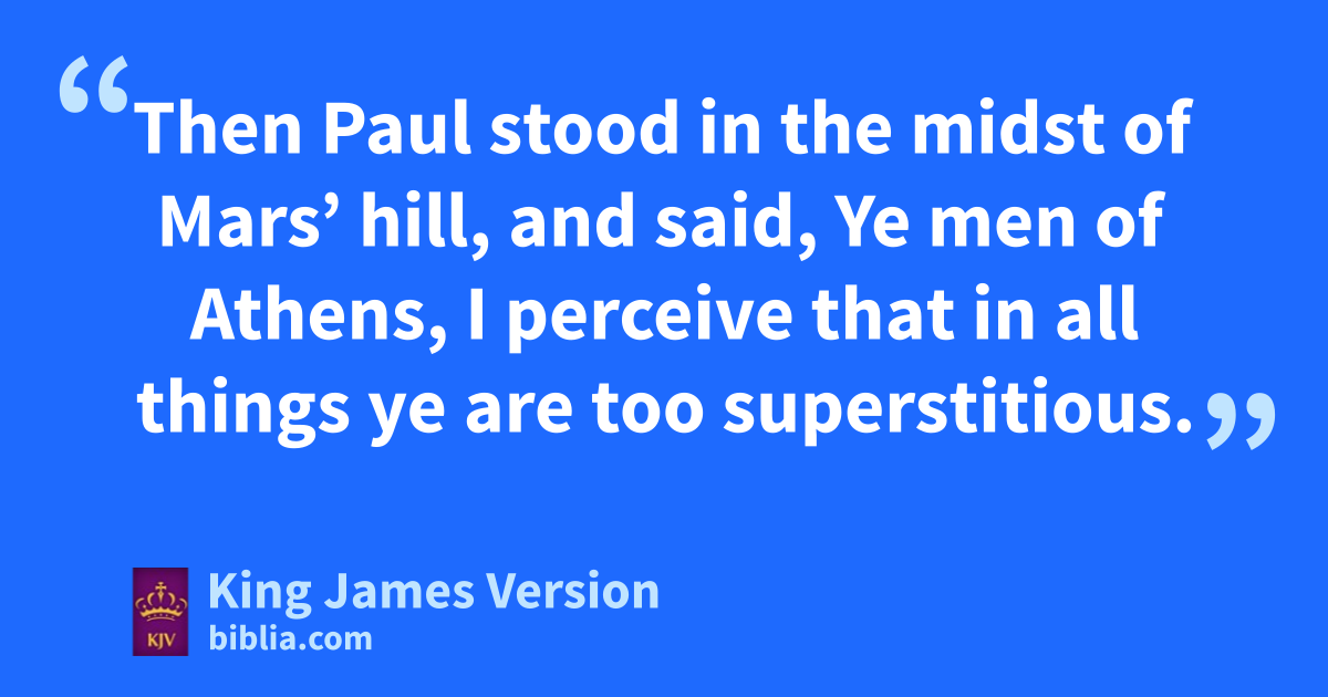 Ye men of Athens, I perceive that in all things ye are too rsuperstitious. 23 For as I passed by, and beheld your ||devotions, I found an altar with this sinscription, TO THE UNKNOWN GOD. Whom therefore ye ignorantly worship, thim declare I unto you. 24 uGod that made the world and all things therein, seeing that he is xLord of heaven and earth, ydwelleth not in temples zmade with hands; 25 Neither is worshipped with men’s hands, aas though he needed any thing, seeing he giveth to all blife, and breath, and all things; 26 And hath made of one blood all nations of men for to dwell on all the face of the earth, and hath cdetermined the times before appointed, and dthe bounds of their habitation; 27 That they should seek the Lord, if haply they might feel after him, and find him, ethough he be not far from every one of us: 28 For fin him we live, and move, and have our being; as certain also of gyour own poets have said, For we are also his offspring. 29 Forasmuch then as we are the offspring of God, hwe ought not to think that the Godhead is like unto gold, or silver, or stone, graven by art and man’s device. 30 And the times of this ignorance God iwinked at; but know commandeth all men every where to repent: 31 Because he hath appointed a day, in the which lhe will judge mthe world in righteousness by that man whom he hath cordained; whereof he ||hath given assurance unto all men, in that nhe hath raised him from the dead.