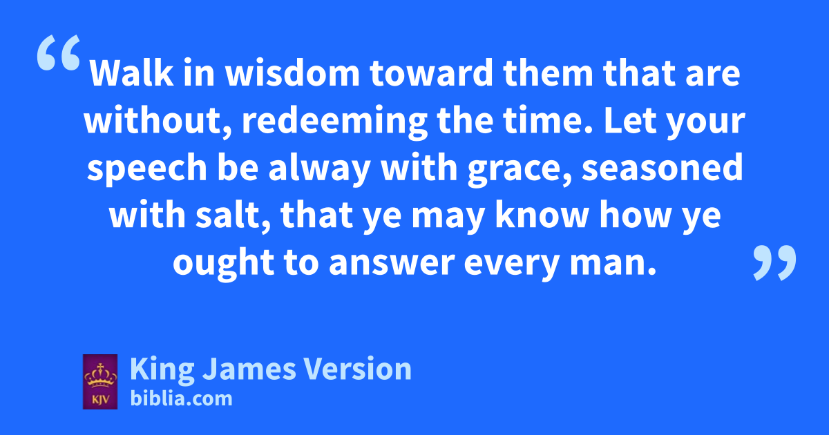 2 cdContinue ein prayer, and fwatch in the same gwith thanksgiving; 3 Withal hpraying also for us, that God would iopen unto us a door of utterance, to speak kthe mystery of Christ, lfor which I am also in bonds: 4 That mI may make it manifest, as I ought to speak. 5 nWalk oin wisdom toward pthem that are without, qredeeming the time. 6 Let your speech be alway rwith grace, sseasoned with salt, that ye may know thow ye ought to answer every man.