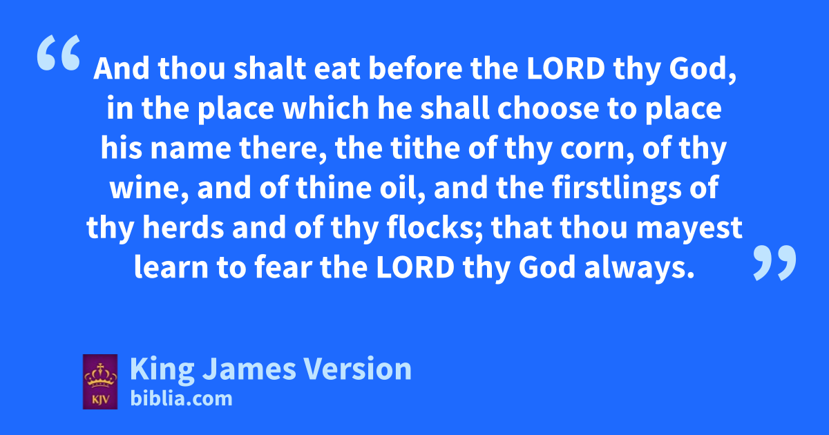 21 nYe shall not eat of any thing that dieth of itself: thou shalt give it unto the stranger that is in thy gates, that he may eat it; or thou mayest sell it unto an alien: ofor thou art an holy people unto the Lord thy God. pThou shalt not seethe a kid in his mother’s milk. 22 qThou shalt truly tithe all the increase of thy seed, that the field bringeth forth year by year. 23 rAnd thou shalt eat before the Lord thy God, in the place which he shall choose to place his name there, the tithe of thy corn, of thy wine, and of thine oil, and sthe firstlings of thy herds and of thy flocks; that thou mayest learn to fear the Lord thy God always. 24 And if the way be too long for thee, so that thou art not able to carry it; or tif the place be too far from thee, which the Lord thy God shall choose to set his name there, when the Lord thy God hath blessed thee: 25 Then shalt thou turn it into money, and ubind up the money in thine hand, and shalt go unto the place which the Lord thy God shall choose: 26 And thou shalt bestow that money for whatsoever thy soul lusteth after, for oxen, or for sheep, or for wine, or for strong drink, or for whatsoever thy soul †desireth: and wthou shalt eat there before the Lord thy God, and thou shalt rejoice, thou, and thine household, 27 And xthe Levite that is within thy gates; thou shalt not forsake him; for yhe hath no part nor inheritance with thee. 28 zAt the end of three years thou shalt bring forth all the tithe of thine increase the same year, and shalt lay it up within thy gates: 29 zAnd the Levite, (because yhe hath no part nor inheritance with thee,) and the stranger, and the fatherless, and the widow, which are within thy gates, shall come, and shall eat and be satisfied; that athe Lord thy God may bless thee in all the work of thine hand which thou doest.