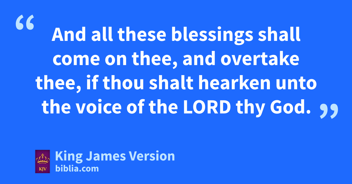 28 And it shall come to pass, aif thou shalt hearken diligently unto the voice of the Lord thy God, to observe and to do all his commandments which I command thee this day, that the Lord thy God will set thee on bhigh above all nations of the earth: 2 And all these blessings shall come on thee, and covertake thee, if thou shalt hearken unto the voice of the Lord thy God. 3 Blessed shalt thou be in the city, and blessed shalt thou be din the field. 4 Blessed shall be ethe fruit of thy body, and the fruit of thy ground, and the fruit of thy cattle, ethe increase of thy kine, and the flocks of thy sheep. 5 Blessed shall be thy fbasket and thy ||store. 6 Blessed shalt thou be gwhen thou comest in, and blessed shalt thou be when thou goest out. 7 The Lord hshall cause thine enemies that rise up against thee to be smitten before thy face: they shall come out against thee one way, and flee before thee seven ways. 8 The Lord shall icommand the blessing upon thee in thy ||storehouses, and in all that thou ksettest thine hand unto; and he shall bless thee in the land which the Lord thy God giveth thee. 9 lThe Lord shall establish thee an holy people unto himself, as he hath sworn unto thee, if thou shalt keep the commandments of the Lord thy God, and walk in his ways. 10 And all people of the earth shall see that thou art mcalled by the name of the Lord; and they shall be nafraid of thee. 11 And othe Lord shall make thee plenteous ||in goods, in the fruit of thy †body, and in the fruit of thy cattle, and in the fruit of thy ground, in the land which the Lord sware unto thy fathers to give thee. 12 The Lord shall open unto thee his good treasure, the heaven pto give the rain unto thy land in his season, and qto bless all the work of thine hand: and rthou shalt lend unto many nations, and thou shalt not borrow. 13 And the Lord shall make thee sthe head, and not the tail; and thou shalt be above only, and thou shalt not be beneath; if that thou hearken unto the commandments of the Lord thy God, which I command thee this day, to observe and to do them: 14 tAnd thou shalt not go aside from any of the words which I command thee this day, to the right hand, or to the left, to go after other gods to serve them.