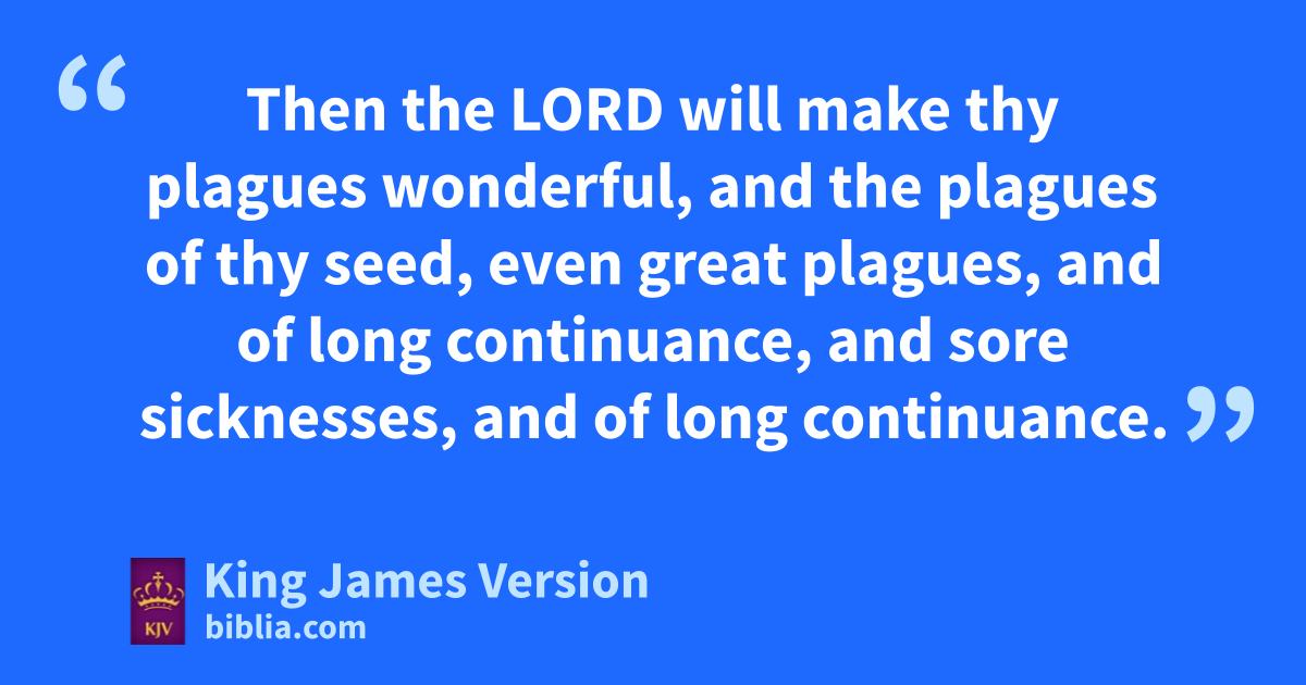 58 If thou wilt not observe to do all the words of this law that are written in this book, that thou mayest fear this glorious and fearful name, yTHE LORD THY GOD; 59 Then the Lord zwill make thy plagues wonderful, and the plagues of thy seed, even great plagues, and of long continuance, and sore sicknesses, and of long continuance. 60 Moreover he will bring upon thee all the adiseases of Egypt, which thou wast afraid of; and they shall cleave unto thee. 61 Also every sickness, and every plague, which is not written in the book of this law, them will the Lord †bring upon thee, until thou be destroyed. 62 And ye shall be left bfew in number, whereas ye were cas the stars of heaven for multitude; because thou wouldest not obey the voice of the Lord thy God. 63 And it shall come to pass, that as the Lord drejoiced over you to do you good, and to multiply you; so the Lord ewill rejoice over you to destroy you, and to bring you to nought; and ye shall be plucked from off the land whither thou goest to possess it. 64 And the Lord fshall scatter thee among all people, from the one end of the earth even unto the other; and gthere thou shalt serve other gods, which neither thou nor thy fathers have known, even wood and stone. 65 And hamong these nations shalt thou find no ease, neither shall the sole of thy foot have rest: ibut the Lord shall give thee there a trembling heart, and kfailing of eyes, and ksorrow of mind: 66 And thy life shall hang in doubt before thee; and thou shalt fear day and night, and shalt have none assurance of thy life: 67 lIn the morning thou shalt say, Would God it were even! and at even thou shalt say, Would God it were morning! for the fear of thine heart wherewith thou shalt fear, and mfor the sight of thine eyes which thou shalt see. 68 And the Lord nshall bring thee into Egypt again with ships, by the way whereof I spake unto thee, oThou shalt see it no more again: and there ye shall be sold unto your enemies for bondmen and bondwomen, and no man shall buy you.