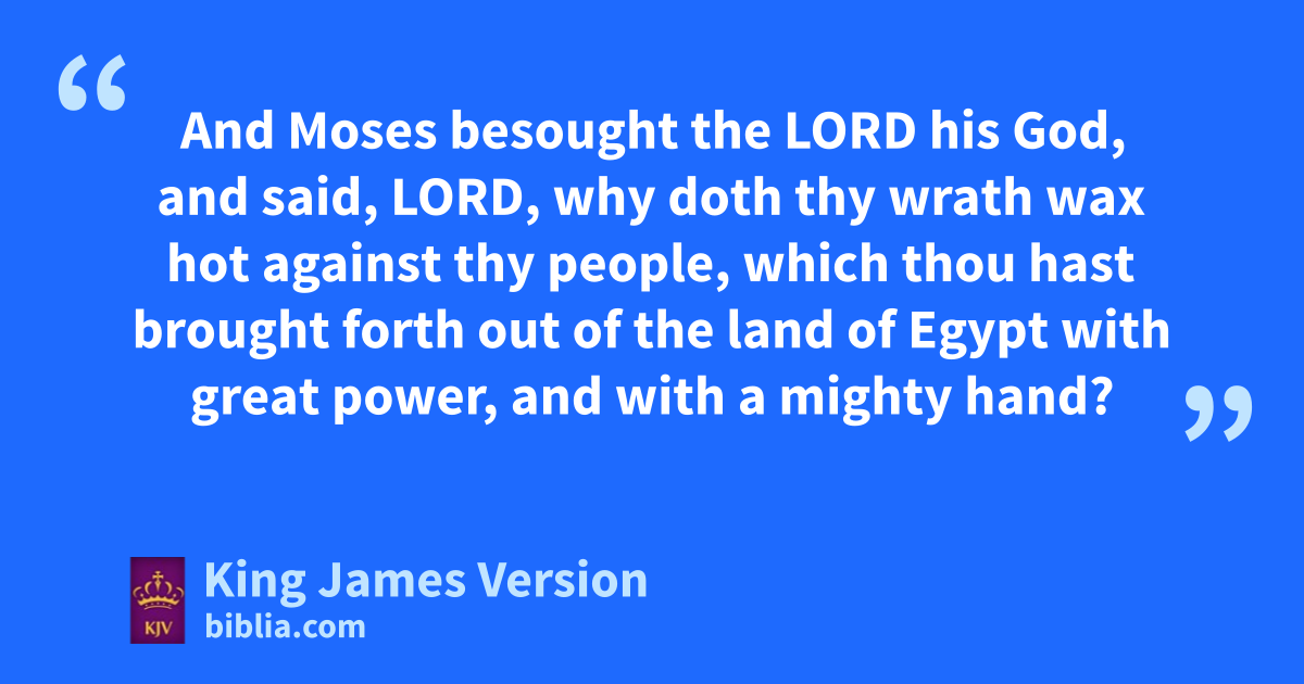7 And the Lord said unto Moses, iGo, get thee down; for thy people, which thou broughtest out of the land of Egypt, jhave corrupted themselves: 8 They have turned aside quickly out of the way which kI commanded them: they have made them a molten calf, and have worshipped it, and have sacrificed thereunto, and said, lThese be thy gods, O Israel, which have brought thee up out of the land of Egypt. 9 And the Lord said unto Moses, mI have seen this people, and, behold, it is a stiffnecked people: 10 Now therefore nlet me alone, that omy wrath may wax hot against them, and that I may consume them: and pI will make of thee a great nation. 11 qAnd Moses besought †the Lord his God, and said, Lord, why doth thy wrath wax hot against thy people, which thou hast brought forth out of the land of Egypt with great power, and with a mighty hand? 12 rWherefore should the Egyptians speak, and say, For mischief did he bring them out, to slay them in the mountains, and to consume them from the face of the earth? Turn from thy fierce wrath, and srepent of this evil against thy people. 13 Remember Abraham, Isaac, and Israel, thy servants, to whom thou tswarest by thine own self, and saidst unto them, uI will multiply your seed as the stars of heaven, and all this land that I have spoken of will I give unto your seed, and they shall inherit it for ever. 14 And the Lord wrepented of the evil which he thought to do unto his people.