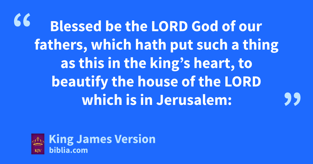 27 *dBlessed be the Lord God of our fathers, ewhich hath put such a thing as this in the king’s heart, to beautify the house of the Lord which is in Jerusalem: 28 And fhath extended mercy unto me before the king, and his gcounsellers, and before all the king’s mighty princes. And I was strengthened as hthe hand of the Lord my God was upon me, and I gathered together out of Israel chief men to go up with me.