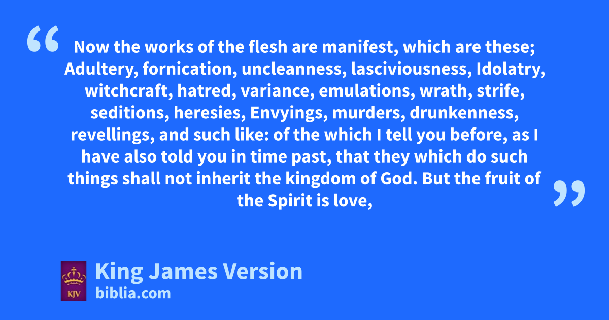 13 For, brethren, ye have been called dunto liberty; only euse not liberty for an foccasion to the flesh, but gby love serve one another. 14 For hall the law is fulfilled in one word, even in this; iThou shalt love thy neighbour as thyself. 15 But if ye jbite and devour one another, take heed that ye be not consumed one of another. 16 This I say then, kWalk in the Spirit, land ||mye shall not fulfil nthe lust of the flesh. 17 For othe flesh lusteth against the Spirit, and the Spirit against the flesh: and these are contrary the one to the other: so that pye cannot do the things that ye would. 18 But if ye be qled of the Spirit, rye are not under the law. 19 Now the works of the flesh are manifest, which are these; Adultery, stufornication, stvuncleanness, tvwlasciviousness, 20 xIdolatry, ywitchcraft, hatred, zavariance, zaemulations, awrath, abstrife, zseditions, cheresies, 21 dEnvyings, dmurders, edrunkenness, frevellings, and such like: of the which I tell you before, as I have also told you in time past, that gthey which do such things gshall not inherit the kingdom of God. 22 But hthe fruit of the Spirit is ilove, joy, peace, jklongsuffering, jkgentleness, lgoodness, mfaith, 23 kMeekness, ntemperance: oagainst such there is no law. 24 And they that are Christ’s phave crucified the flesh with the ||affections and lusts. 25 qIf we live in the Spirit, let us also walk in the Spirit. 26 rLet us not be desirous of vain glory, provoking one another, envying one another.