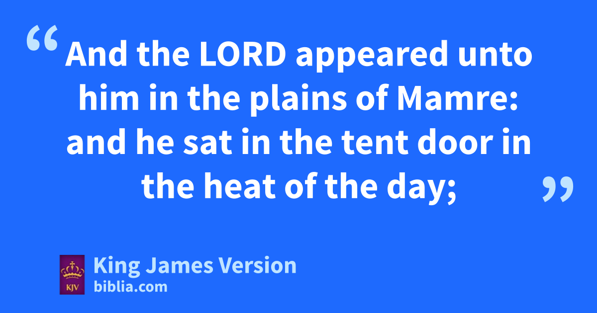 18 And the Lord appeared unto him in the aplains of Mamre: and he sat in the tent door in the heat of the day; 2 And he lift up his eyes and looked, and, lo, bthree men stood by him: cand when he saw them, he ran to meet them from the tent door, and bowed himself toward the ground, 3 And said, My Lord, if now I have found favour in thy sight, pass not away, I pray thee, from thy servant: 4 Let da little water, I pray you, be fetched, and wash your feet, and rest yourselves under the tree: 5 And eI will fetch a morsel of bread, and †comfort ye your hearts; after that ye shall pass on: ffor therefore †are ye come to your servant. And they said, So do, as thou hast said. 6 And Abraham hastened into the tent unto Sarah, and said, †Make ready quickly three measures of fine meal, knead it, and make cakes upon the hearth. 7 And Abraham ran unto the herd, and fetcht a calf tender and good, and gave it unto a young man; and he hasted to dress it. 8 And he took butter, and milk, and the calf which he had dressed, and set it before them; and he stood by them under the tree, and they did eat. 9 And they said unto him, Where is Sarah thy wife? And he said, Behold, gin the tent. 10 And he said, I will certainly return unto thee haccording to the time of life; and, lo, iSarah thy wife shall have a son. And Sarah heard it in the tent door, which was behind him. 11 Now kAbraham and Sarah were old and well stricken in age; and it ceased to be with Sarah lafter the manner of women. 12 Therefore Sarah mlaughed within herself, saying, After I am waxed old shall I have pleasure, my nlord being old also? 13 And the Lord said unto Abraham, Wherefore did Sarah laugh, saying, Shall I of a surety bear a child, which am old? 14 oIs any thing too hard for the Lord? pAt the time appointed I will return unto thee, according to the time of life, and Sarah shall have a son. 15 Then Sarah qdenied, saying, I laughed not; for she was afraid. And he said, Nay; but thou didst laugh.
