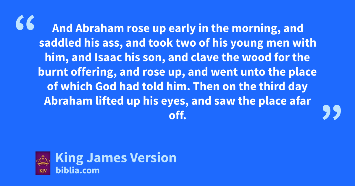 22 *And it came to pass after these things, that aGod did tempt Abraham, and said unto him, Abraham: and he said, †Behold, here I am. 2 And he said, Take now thy son, thine only son Isaac, whom thou lovest, and get thee into the land of bMoriah; and offer him there for a burnt offering upon one of the mountains which I will tell thee of. 3 And Abraham rose up early in the morning, and saddled his ass, and took two of his young men with him, and Isaac his son, and clave the wood for the burnt offering, and rose up, and went unto the place of which God had told him. 4 Then on the third day Abraham lifted up his eyes, and saw the place afar off. 5 And Abraham said unto his young men, Abide ye here with the ass; and I and the lad will go yonder and worship, and come again to you. 6 And Abraham took the wood of the burnt offering, and claid it upon Isaac his son; and he took the fire in his hand, and a knife; and they went both of them together. 7 And Isaac spake unto Abraham his father, and said, My father: and he said, †Here am I, my son. And he said, Behold the fire and the wood: but where is the ||lamb for a burnt offering? 8 And Abraham said, My son, God will provide himself a lamb for a burnt offering: so they went both of them together. 9 And they came to the place which God had told him of; and Abraham built an altar there, and laid the wood in order, and bound Isaac his son, and dlaid him on the altar upon the wood. 10 And Abraham stretched forth his hand, and took the knife to slay his son. 11 And the angel of the Lord called unto him out of heaven, and said, Abraham, Abraham: and he said, Here am I. 12 And he said, eLay not thine hand upon the lad, neither do thou any thing unto him: for fnow I know that thou fearest God, seeing thou hast not withheld thy son, thine only son from me. 13 And Abraham lifted up his eyes, and looked, and behold behind him a ram caught in a thicket by his horns: and Abraham went and took the ram, and offered him up for a burnt offering in the stead of his son. 14 And Abraham called the name of that place ||Jehovah-jireh: as it is said to this day, In the mount of the Lord it shall be seen. 15 And the angel of the Lord called unto Abraham out of heaven the second time, 16 And said, gBy myself have I sworn, saith the Lord, for because thou hast done this thing, and hast not withheld thy son, thine only son: 17 That in blessing I will bless thee, and in multiplying I will multiply thy seed has the stars of the heaven, iand as the sand which is upon the sea †shore; and kthy seed shall possess lthe gate of his enemies; 18 mAnd in thy seed shall all the nations of the earth be blessed; nbecause thou hast obeyed my voice. 19 So Abraham returned unto his young men, and they rose up and went together to oBeer-sheba; and Abraham dwelt at Beer-sheba.