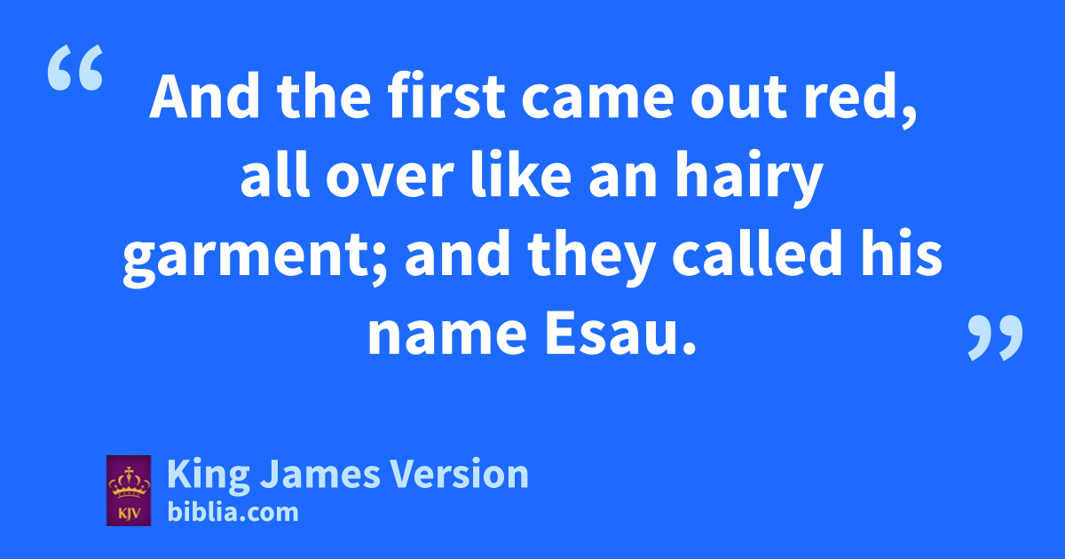 24 And when her days to be delivered were fulfilled, behold, there were twins in her womb. 25 And the first came out red, aall over like an hairy garment; and they called his name Esau. 26 And after that came his brother out, and bhis hand took hold on Esau’s heel; and chis name was called Jacob: and Isaac was threescore years old when she bare them. 27 *And the boys grew: and Esau was da cunning hunter, a man of the field; and Jacob was ea plain man, fdwelling in tents. 28 And Isaac loved Esau, because †he did geat of his venison: hbut Rebekah loved Jacob.