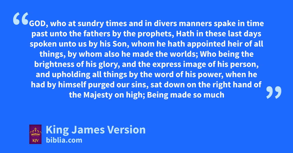 1 *God, who at sundry times and ain divers manners spake in time past unto the fathers by the prophets, 2 Hath bin these last days cspoken unto us by dhis Son, whom he hath eappointed fheir of all things, gby whom also he made hthe worlds; 3 Who being ithe brightness jof his glory, and kthe express image of his person, and lupholding all things by the word of his power, mwhen he had by himself purged our sins, nsat down oon the right hand of the Majesty on high; 4 Being made so much better than the angels, as he hath by inheritance obtained pa more excellent name than they. 5 For unto which of the angels said he at any time, qThou art my Son, this day have I begotten thee? And again, rI will be to him a Father, and he shall be to me a Son? 6 And ||sagain, twhen he bringeth in uthe firstbegotten into vthe world, he saith, wAnd let all the angels of God worship him. 7 And †xof the angels he saith, yWho maketh his angels spirits, and his ministers a flame of fire. 8 But unto dthe Son he saith, zThy throne, O God, is afor ever and ever: a sceptre of †righteousness is the sceptre of thy kingdom. 9 Thou hast loved righteousness, and hated iniquity; therefore God, even thy God, bhath anointed thee with the oil of gladness above thy fellows. 10 And, cThou, Lord, in the beginning hast laid the foundation of the earth; and the heavens are the works of thine hands: 11 dThey shall perish; but thou remainest; and they all shall ewax old as doth a garment; 12 And as a vesture shalt thou fold them up, and they shall be changed: but thou art ethe same, and thy years shall not fail. 13 But to which of the angels said he at any time, fSit on my right hand, until I make thine enemies thy footstool? 14 Are they not all gministering spirits, hsent forth to minister for them who shall be iheirs of salvation?