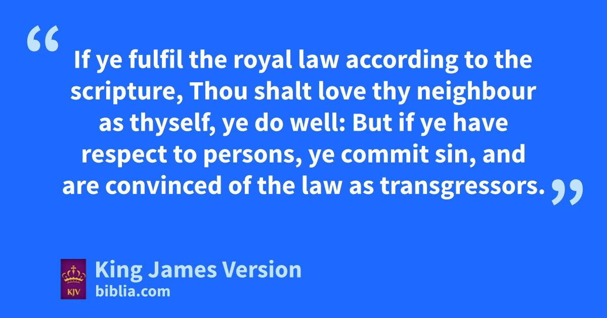 2 My brethren, have not athe faith of our Lord Jesus Christ, bthe Lord of glory, cwith respect of persons. 2 For if there come unto your †assembly a man with a gold ring, in dgoodly apparel, and there come in also a poor man in vile raiment; 3 And ye ehave respect to him that weareth the dgay clothing, and say unto him, Sit thou here ||in a good place; and fsay to the poor, Stand thou there, or sit here under my footstool: 4 Are ye not then gipartial in yourselves, and are become judges of hievil thoughts? 5 Hearken, my beloved brethren, Hath not God klchosen the poor of this world mrich in faith, and nheirs of ||othe kingdom pwhich he hath promised to qthem that love him? 6 But ye have rdespised the poor. Do not rich men soppress you, and tdraw you ubefore the judgment seats? 7 Do not they vblaspheme that worthy name wby the which ye are called? 8 If ye fulfil xthe royal law according to xxthe scripture, yThou shalt love thy neighbour as thyself, ye do well: 9 But cif ye have respect to persons, ye commit sin, and are zconvinced of the law as transgressors. 10 For whosoever shall keep the whole law, and yet aoffend in one point, bhe is cguilty of all. 11 For ||he that said, dDo not commit adultery, said also, dDo not kill. Now if thou commit no adultery, yet if thou kill, thou art become a transgressor of the law. 12 So speak ye, and so do, as they that shall be judged by ethe law of liberty. 13 For fhe shall have judgment without mercy, that hath shewed no mercy; and gmercy ||rejoiceth against judgment.