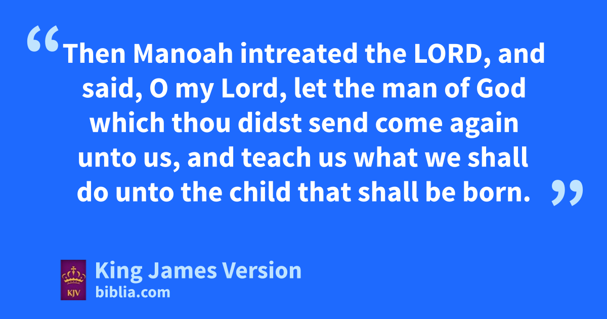 8 Then Manoah intreated the Lord, and said, O my Lord, let the man of God which thou didst send come again unto us, and teach us what we shall do unto the child that shall be born. 9 And God hearkened to the voice of Manoah; and the angel of God came again unto the woman as she sat in the field: but Manoah her husband was not with her. 10 And the woman made haste, and ran, and shewed her husband, and said unto him, Behold, the man hath appeared unto me, that came unto me the other day. 11 And Manoah arose, and went after his wife, and came to the man, and said unto him, Art thou the man that spakest unto the woman? And he said, I am. 12 And Manoah said, Now let thy words come to pass. †How shall we order the child, and ||how shall we do unto him? 13 And the angel of the Lord said unto Manoah, Of all that I said unto the woman let her beware. 14 She may not eat of any thing that cometh of the vine, oneither let her drink wine or strong drink, nor eat any unclean thing: all that I commanded her let her observe. 15 And Manoah said unto the angel of the Lord, I pray thee, plet us detain thee, until we shall have made ready a kid †for thee. 16 And the angel of the Lord said unto Manoah, Though thou detain me, I will not eat of thy bread: and if thou wilt offer a burnt offering, thou must offer it unto the Lord. For Manoah knew not that he was an angel of the Lord. 17 And Manoah said unto the angel of the Lord, qWhat is thy name, that when thy sayings come to pass we may do thee honour? 18 And the angel of the Lord said unto him, rWhy askest thou thus after my name, seeing it is ||secret? 19 So Manoah stook a kid with ta meat offering, and offered it upon a rock unto the Lord: and the angel did wondrously; and Manoah and his wife looked on. 20 For it came to pass, uwhen the flame went up toward heaven from off the altar, that the angel of the Lord ascended in the flame of the altar. And Manoah and his wife looked on it, and wfell on their faces to the ground. 21 But the angel of the Lord did no more appear to Manoah and to his wife. xThen Manoah knew that he was an angel of the Lord. 22 And Manoah said unto his wife, yWe shall surely die, because we have seen God. 23 But his wife said unto him, If the Lord were pleased to kill us, he would not have received za burnt offering and a meat offering at our hands, neither would he have shewed us all these things, nor would as at this time have told us such things as these.