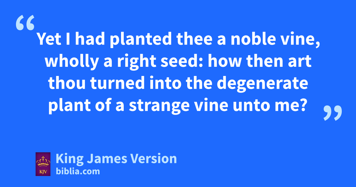 14 nIs Israel a servant? is he oa homeborn slave? why is he †spoiled? 15 pThe young lions roared upon him, and †yelled, and qthey made his land waste: rhis cities are burned qswithout inhabitant. 16 Also the children of tNoph and uTahapanes ||have broken the crown of thy head. 17 wHast thou not procured this unto thyself, iin that thou hast forsaken the Lord thy God, xwhen he led thee by the way? 18 And now ywhat hast thou to do in the way of Egypt, to drink the waters of zSihor? or awhat hast thou to do in the way of Assyria, to drink the waters of bthe river? 19 cThine own wickedness shall correct thee, and thy dbackslidings shall reprove thee: know therefore and see that it is an evil thing and ebitter, fthat thou hast forsaken the Lord thy God, and that my fear is not in thee, saith the Lord God of hosts. 20 For of old time gI have broken thy yoke, and gburst thy bands; and thou saidst, I will not ||transgress; when hiupon every high hill and under every green tree kthou wanderest, ilplaying the harlot. 21 Yet mI had planted thee na noble vine, wholly a right seed: how then art thou turned into othe degenerate plant of a strange vine unto me? 22 For though pthou wash thee with qnitre, and take thee much rsoap, yet thine iniquity is smarked before me, saith the Lord God. 23 tHow canst thou say, I am not polluted, I have not gone after Baalim? see thy way ttin the valley, know what thou hast done: ||thou art ua swift uudromedary traversing her ways; 24 ||vwA wild ass †used to the wilderness, that vsnuffeth up the wind at †her pleasure; in her xoccasion who can ||turn her away? all they that seek her will not weary themselves; yin her month they shall find her. 25 Withhold zthy foot from being unshod, and thy throat afrom thirst: bbut thou saidst, ||cThere is no hope: no; for I have loved dstrangers, and after them will I go. 26 As the thief is ashamed when he is found, so is the house of Israel ashamed; they, ddtheir kings, their princes, and their priests, and their prophets, 27 Saying to ea stock, Thou art my father; and to a stone, Thou hast ||brought me forth: for they have turned †their back unto me, and not their face: but eein the time of their ftrouble they will say, Arise, and save us. 28 But gwhere are thy gods that thou hast made thee? let them arise, hif they can save thee in the time of thy †ftrouble: ifor according to the number of thy cities are thy gods, O Judah. 29 kWherefore will ye plead with me? ye all have transgressed against me, saith the Lord. 30 In vain lhave I smitten your children; they received no correction: myour own sword hath devoured your prophets, like a destroying lion.