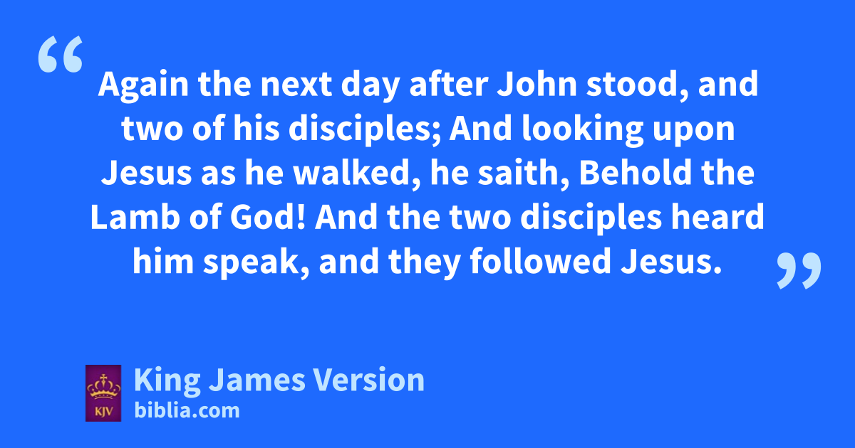 35 Again the next day after John stood, and two of his disciples; 36 And xlooking upon Jesus as he walked, he saith, rBehold the Lamb of God! 37 And the two disciples heard him speak, and they followed Jesus. 38 Then Jesus turned, and saw them following, and saith unto them, sWhat seek ye? They said unto him, tRabbi, (which is to say, being interpreted, Master,) where ||dwellest thou? 39 He saith unto them, Come and see. They came and saw where he dwelt, and abode with him that day: for it was ||about the tenth hour. 40 uOne of the two which heard John speak, and followed him, was Andrew, Simon Peter’s brother. 41 He first findeth vhis own brother Simon, and saith unto him, We have found the wMessias, which is, being interpreted, ||the Christ. 42 And he brought him to Jesus. And when Jesus xbeheld him, he said, Thou art ySimon the son of Jona: thou shalt be called zCephas, which is by interpretation, ||A stone.