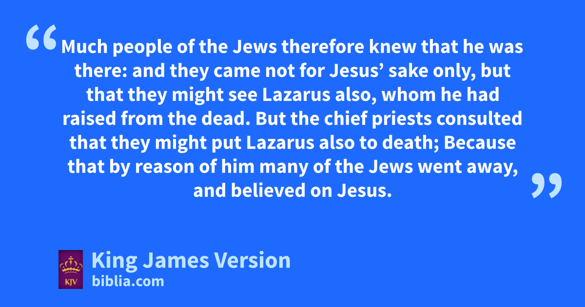 9 Much people of qthe Jews therefore knew that he was there: and they came not for Jesus’ sake only, but that they might see Lazarus also, rwhom he had raised from the dead. 10 But sthe chief priests tconsulted that they might put Lazarus also to death; 11 Because uthat by reason of him xmany of qthe Jews went away, and believed on Jesus.