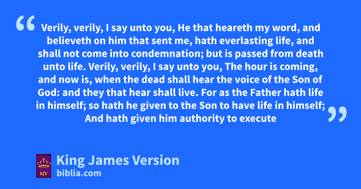 16 And therefore did fthe Jews persecute Jesus, and nsought to slay him, because jhe had done these things on the sabbath day. 17 But Jesus kanswered them, My Father worketh lhitherto, mand I work. 18 Therefore fthe Jews nsought the more to kill him, because he not only jhad broken the sabbath, but osaid also that God was phis Father, qmaking himself equal with God. 19 Then kanswered Jesus and said unto them, Verily, verily, I say unto you, The Son can do nothing rof himself, but what he seeth the Father do: for what things soever he doeth, these also doeth the Son likewise. 20 For sthe Father loveth the Son, and sheweth him all things that himself doeth: and the will shew him greater works than these, that ye may marvel. 21 For as the Father raiseth up the dead, and uquickeneth them; even so vthe Son quickeneth whom he will. 22 For the Father judgeth no man, but whath committed all xjudgment unto the Son: 23 That all men should honour the Son, even as they yhonour the Father. zHe that honoureth not the Son honoureth not the Father which hath sent him. 24 Verily, verily, I say unto you, aHe that heareth my word, and believeth on him that sent me, hath everlasting life, and shall not come into condemnation; but bis passed from death unto life. 25 Verily, verily, I say unto you, cThe hour is coming, and now is, when dthe dead shall hear ddthe voice of the Son of God: and they that hear shall live. 26 For as the Father hath life in himself; eso hath he given to the Son to have life in himself; 27 And fhath given him gauthority to execute hjudgment also, ibecause he is the Son of man. 28 jMarvel not at this: for dthe hour is coming, in the which all that are in the graves shall hear his voice, 29 kAnd shall come forth; lthey that have mdone good, unto the resurrection of life; and they that have mndone evil, unto the resurrection of damnation. 30 oI can of mine own self do nothing: as I hear, I judge: and my judgment is just; because pI seek not mine own will, but qthe will of the Father which hath sent me. 31 rIf I bear witness of myself, my witness is not true. 32 There is sanother that beareth witness of me; and tI know that the witness which he witnesseth of me is true. 33 uYe sent unto John, and vhe bare witness unto the truth. 34 But wI receive not testimony from man: but these things I say, that ye might be saved. 35 He xwas a burning and ya shining zlight: and ye were willing afor a season to rejoice in his light. 36 But I have bgreater witness than that of John: for bbthe works which cthe Father hath given me to finish, the same works that I do, bear witness of me, that ccthe Father hath sent me. 37 And the Father himself, ccwhich hath sent me, dhath borne witness of me. Ye have neither eheard his voice at any time, nor fseen his shape. 38 And gye have not his word abiding in you: for whom he hath sent, him ye believe not. 39 hSearch the scriptures; for in them ye think ye have eternal life: and ithey are they which testify of me. 40 And kye will not come to me, that ye might have life. 41 I receive not lhonour from men. 42 But mI know you, that ye have not nthe love of God in you. 43 nnI am come in my Father’s name, and ye receive me not: if oanother shall come in his own name, him ye will receive. 44 How can ye believe, which receive phonour one of another, and seek not qthe honour that cometh from God qqonly? 45 Do not think rthat I will accuse you to the Father: sthere is one that accuseth you, even Moses, tin whom ye trust. 46 For had ye believed Moses, ye would have believed me: for uhe wrote of me. 47 But if ye believe not his xwritings, yhow shall ye believe my words?