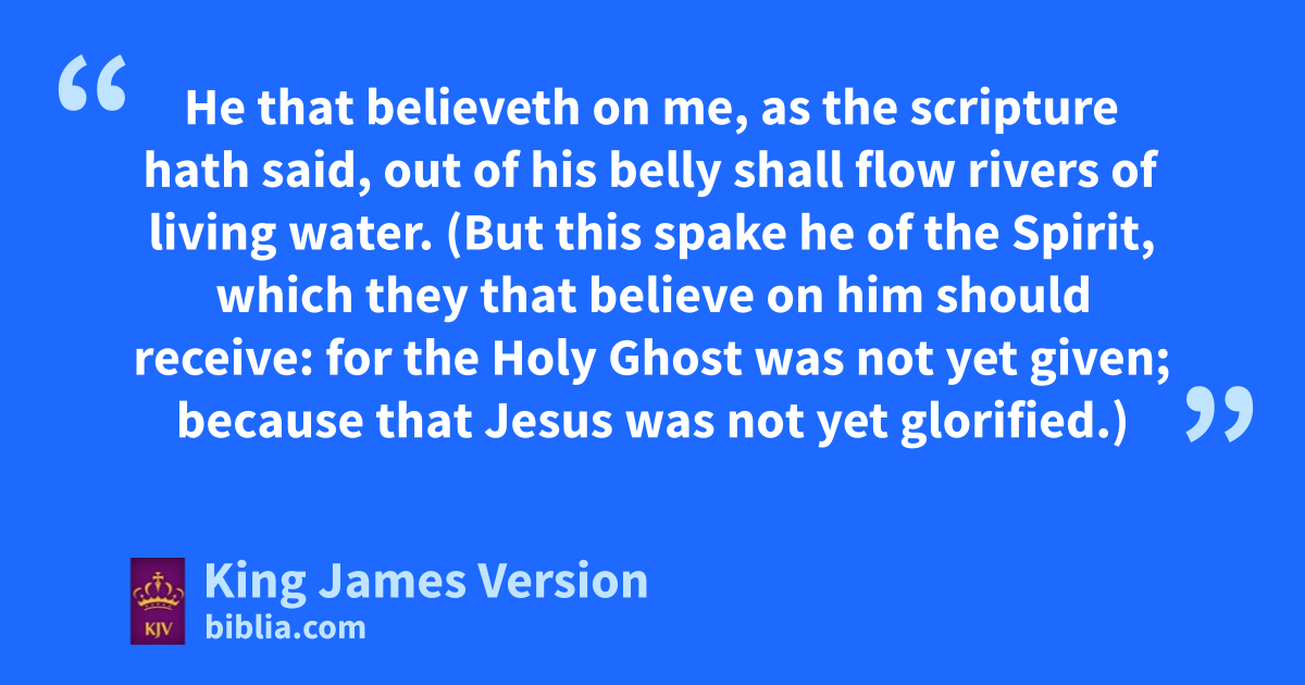 37 In the last day, nthat great day of the feast, Jesus stood and ocried, saying, pIf any man thirst, let him come unto me, and drink. 38 qHe that believeth on me, as the scripture hath said, rout of his belly shall flow rivers of sliving water. 39 (But tthis spake he of uthe Spirit, which they that believe on him should receive: xfor the Holy Ghost was not yet ygiven; zbecause that Jesus was not yet aglorified.) 40 Many of the people therefore, when they heard this saying, said, Of a truth this is bthe Prophet. 41 Others said, cThis is the Christ. But some said, Shall Christ come dout of Galilee? 42 Hath not the scripture said, That Christ cometh eof the seed of David, and out of the town of fBeth-lehem, gwhere David was? 43 So there was ha division among the people because of him. 44 And isome of them would have taken him; ibut no man laid hands on him.