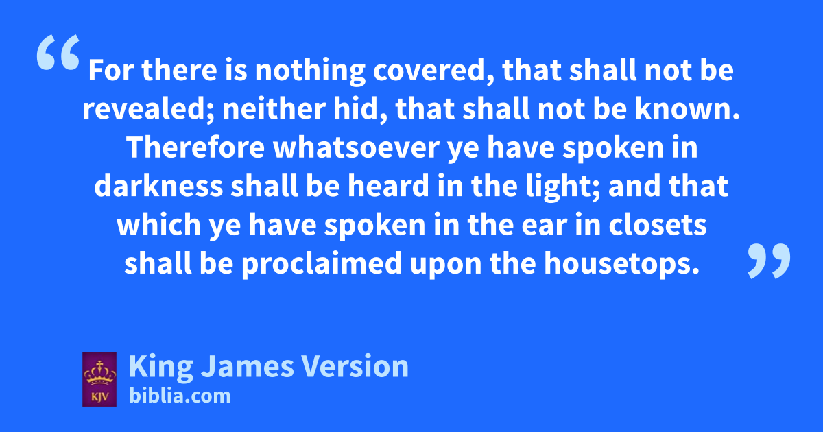 12 aIn the mean time, when there were gathered together an innumerable multitude of people, insomuch that they trode one upon another, he began to say unto his disciples first of all, bBeware ye of the leaven of the Pharisees, which is chypocrisy. 2 dFor there is nothing covered, that shall not be revealed; neither hid, that shall not be known. 3 Therefore whatsoever ye have spoken in darkness shall be heard in the light; and that which ye have spoken in the ear in eclosets shall be proclaimed upon the fhousetops. 4 And I say unto you gmy friends, Be not afraid of them that kill the body, and after that have no more that they can do. 5 But I will hforewarn you whom ye shall fear: Fear him, which after he hath killed hath power to cast into hell; yea, I say unto you, Fear him. 6 Are not ifive sparrows sold for two ||farthings, and not one of them is forgotten before God? 7 But even the very hairs of your head are all numbered. Fear not therefore: ye are of more value than many sparrows. 8 Also I say unto you, Whosoever shall confess me before men, him shall the Son of man also confess before kthe angels of God: 9 But he that denieth me before men shall be denied before kthe angels of God. 10 And lwhosoever shall speak a word against the Son of man, it shall be forgiven him: but unto him that blasphemeth against the Holy Ghost it shall not be forgiven. 11 mAnd when they bring you unto the synagogues, and unto nomagistrates, and nppowers, qtake ye no thought how or what thing ye shall answer, or what ye shall say: 12 rFor the Holy Ghost shall teach you in the same hour what ye ought to say.