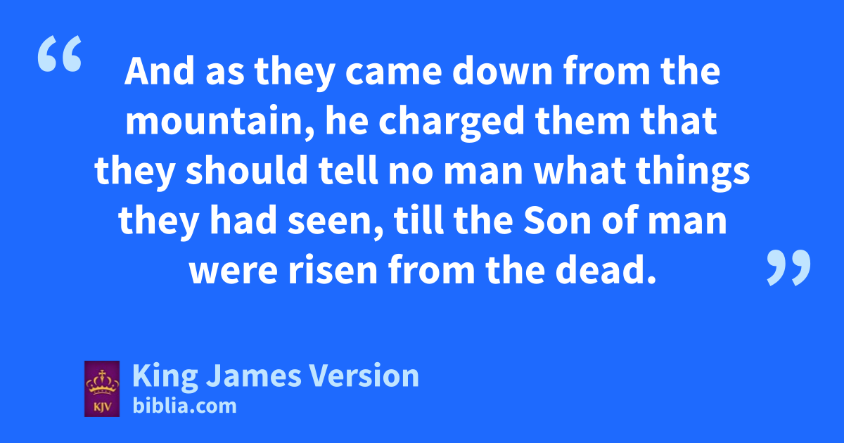 9 eAnd as they came down from the mountain, he fcharged them that they should tell no man what things they had seen, till the Son of man were risen from the dead. 10 And they kept that saying with themselves, questioning one with another what the rising from the dead should mean. 11 And they asked him, saying, Why say the scribes that Elias must first come? 12 And he answered and told them, Elias verily cometh first, and restoreth all things; and ghow it is written of the Son of man, that he must suffer many things, and hbe set at nought. 13 But I say unto you, That Elias is indeed come, and they have done unto him whatsoever they listed, as it is written of him.