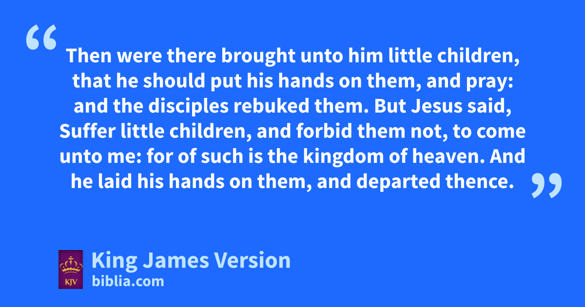 13 tThen were there brought unto him little children, that he should put his hands on them, and pray: and the disciples rebuked them. 14 But Jesus said, Suffer little children, and forbid them not, to come unto me: for uof such is the kingdom of heaven. 15 And he laid his hands on them, and departed thence.