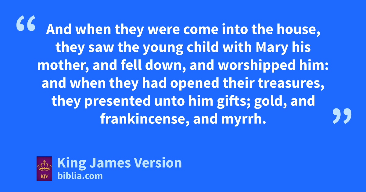 2 Now when aJesus was born in Beth-lehem of Judaea in the days of Herod the king, behold, there came bwise men cfrom the east to Jerusalem, 2 Saying, dWhere is he that is born King of the Jews? for we have seen ehis star in the east, and are come to worship him. 3 When Herod the king had heard these things, he was troubled, and all Jerusalem with him. 4 And when he had gathered all the chief priests and fscribes of the people together, ghe demanded of them where Christ should be born. 5 And they said unto him, In Beth-lehem of Judaea: for thus it is written by the prophet, 6 hAnd thou Beth-lehem, in the land of Juda, art not the least among the princes of Juda: for out of thee shall come a Governor, that shall ||rule my people Israel. 7 Then Herod, when he had privily called the wise men, inquired of them diligently what time the star appeared. 8 And he sent them to Beth-lehem, and said, Go and search diligently for the young child; and when ye have found him, bring me word again, that I may come and worship him also. 9 When they had heard the king, they departed; and, lo, the star, which they saw in the east, went before them, till it came and stood over where the young child was. 10 When they saw the star, they irejoiced with exceeding great joy. 11 And when they were come into the house, they saw the young child with Mary his mother, and fell down, and worshipped him: and when they had opened their treasures, jthey ||presented unto him gifts; kgold, and kfrankincense, and lmyrrh. 12 And being warned of God min a dream that they should not return to Herod, they departed into their own country another way.
