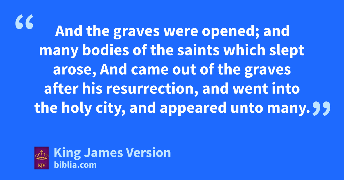 51 And, behold, bthe veil of the temple was rent in twain from the top to the bottom; and cthe earth did quake, and the rocks rent; 52 And the graves were opened; and many bodies of the saints dwhich slept arose, 53 And came out of the graves after his resurrection, and went into ethe holy city, and appeared unto many. 54 Now when the centurion, and they that were with him, fwatching Jesus, saw cthe earthquake, and gthose things that were done, they feared greatly, saying, hTruly this was the Son of God. 55 And imany women were there beholding jafar off, kwhich followed Jesus from Galilee, lministering unto him: 56 Among which was Mary mMagdalene, and nMary the mother of oJames and Joses, and pthe mother of Zebedee’s children.