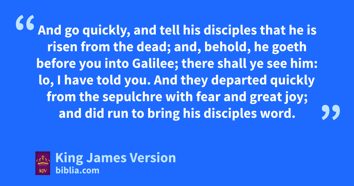 28 aIn the end of the sabbath, bas it began to dawn toward the first day of the week, came bMary Magdalene and cthe other Mary to see the sepulchre. 2 And, behold, there ||was da great earthquake: for ethe angel of the Lord descended from heaven, and came and rolled back fthe stone from the door, and sat upon it. 3 gHis countenance was like lightning, and his raiment hwhite as snow: 4 And for fear of him ithe keepers did shake, and became as dead men. 5 And the angel janswered and said unto the women, Fear not ye: for I know that ye seek Jesus, which was crucified. 6 He is not here: for he is risen, kas he said. Come, see the place where the Lord lay. 7 And go quickly, and tell his disciples that he is risen from the dead; and, behold, lhe goeth before you into Galilee; there shall ye see him: lo, I have told you. 8 And they departed quickly from the sepulchre with mfear and great joy; and ndid run to bring his disciples word. 9 And as they went to tell his disciples, behold, Jesus met othem, saying, All hail. And they came and pheld him by the feet, and qworshipped him. 10 Then said Jesus unto them, rBe not afraid: go tell smy brethren lthat they go into Galilee, and there shall they see me.