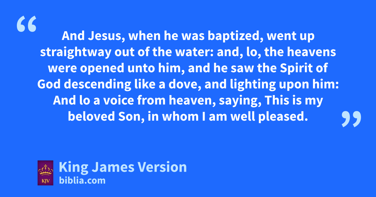 13 *aThen cometh Jesus bfrom Galilee to Jordan unto John, to be baptized of him. 14 But John forbad him, saying, I have need to be baptized of thee, and comest thou to me? 15 And Jesus answering said unto him, Suffer it to be so now: for thus it becometh us to fulfil call righteousness. Then he suffered him. 16 And Jesus, when he was baptized, went up straightway out of the water: and, lo, the heavens were opened unto him, and he saw dthe Spirit of God descending like a dove, and lighting upon him: 17 eAnd lo a voice from heaven, saying, This is my fbeloved Son, in whom I am well pleased.