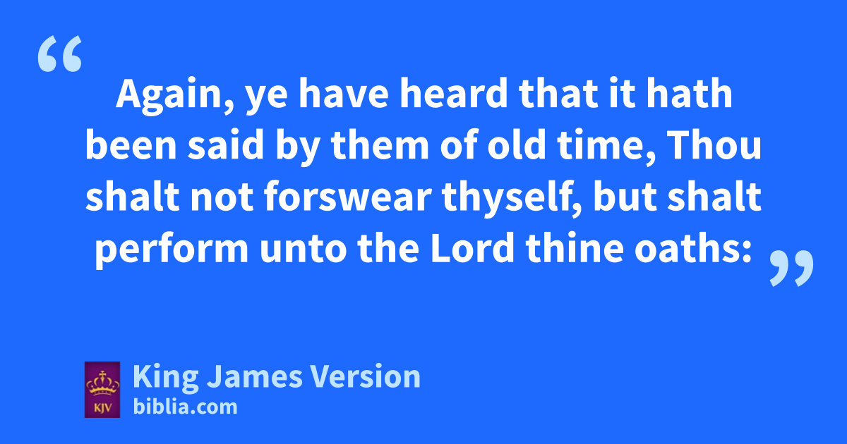 33 Again, ye have heard that it hath been said jby them of old time, rThou shalt not forswear thyself, but sshalt perform unto the Lord thine oaths: 34 But I say unto you, tSwear not at all; neither by heaven; for it is uGod’s throne: 35 Nor by the earth; for it is xhis footstool: neither by Jerusalem; for it is ythe city of the great King. 36 Neither shalt thou swear by thy head, because thou canst not make one hair white or black. 37 zBut let your communication be, Yea, yea; Nay, nay: for whatsoever is more than these cometh of evil.