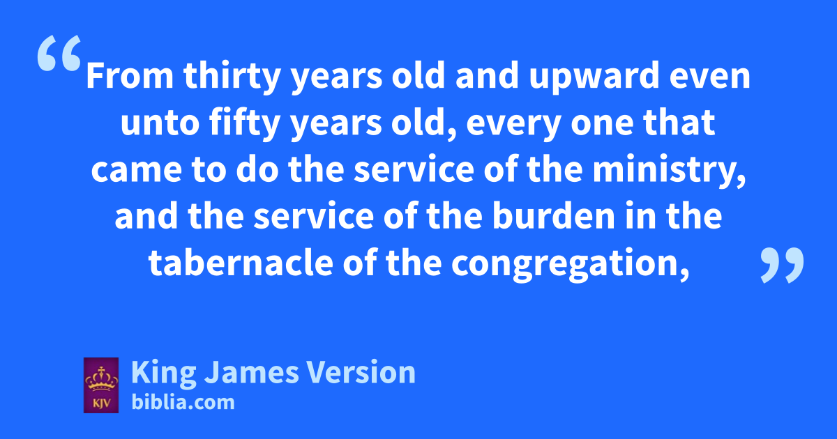 34 And Moses and Aaron and the chief of the congregation dnumbered the sons of the Kohathites after their families, and after the house of their fathers, 35 From thirty years old and upward even unto fifty years old, every one that entereth into the service, for the work in the tabernacle of the congregation: 36 And those that were numbered of them by their families were two thousand seven hundred and fifty. 37 dThese were they that were numbered of the families of the Kohathites, all that might do service in the tabernacle of the congregation, which Moses and Aaron did number according to the commandment of the Lord by the hand of Moses. 38 And those that were numbered of the sons of Gershon, throughout their families, and by the house of their fathers, 39 From thirty years old and upward even unto fifty years old, every one that entereth into the service, for the work in the tabernacle of the congregation, 40 Even those that were numbered of them, throughout their families, by the house of their fathers, were two thousand and six hundred and thirty. 41 eThese are they that were numbered of the families of the sons of Gershon, of all that might do service in the tabernacle of the congregation, whom Moses and Aaron did number according to the commandment of the Lord. 42 And those that were numbered of the families of the sons of Merari, throughout their families, by the house of their fathers, 43 From thirty years old and upward even unto fifty years old, every one that entereth into the service, for the work in the tabernacle of the congregation, 44 Even those that were numbered of them after their families, were three thousand and two hundred. 45 fThese be those that were numbered of the families of the sons of Merari, whom Moses and Aaron numbered according to the word of the Lord by the hand of Moses. 46 All those that were numbered of the Levites, whom Moses and Aaron and the chief of Israel numbered, after their families, and after the house of their fathers, 47 From thirty years old and upward even unto fifty years old, every one that came to do the service of the ministry, and the service of the burden in the tabernacle of the congregation, 48 Even those that were numbered of them, were eight thousand and five hundred and fourscore. 49 According to the commandment of the Lord they were numbered by the hand of Moses, gevery one according to his service, and according to his burden: thus were they numbered of him, has the Lord commanded Moses.