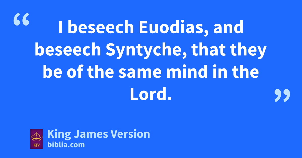 4 Therefore, my brethren dearly beloved and alonged for, bcmy joy and cdcrown, so ddstand fast in the Lord, my dearly beloved. 2 I beseech Euodias, and beseech Syntyche, that ethey be of the same mind in the Lord. 3 And I intreat thee also, ftrue yokefellow, help those women which glaboured with me in the gospel, with Clement also, and with other my hfellowlabourers, whose names are in ithe book of life.