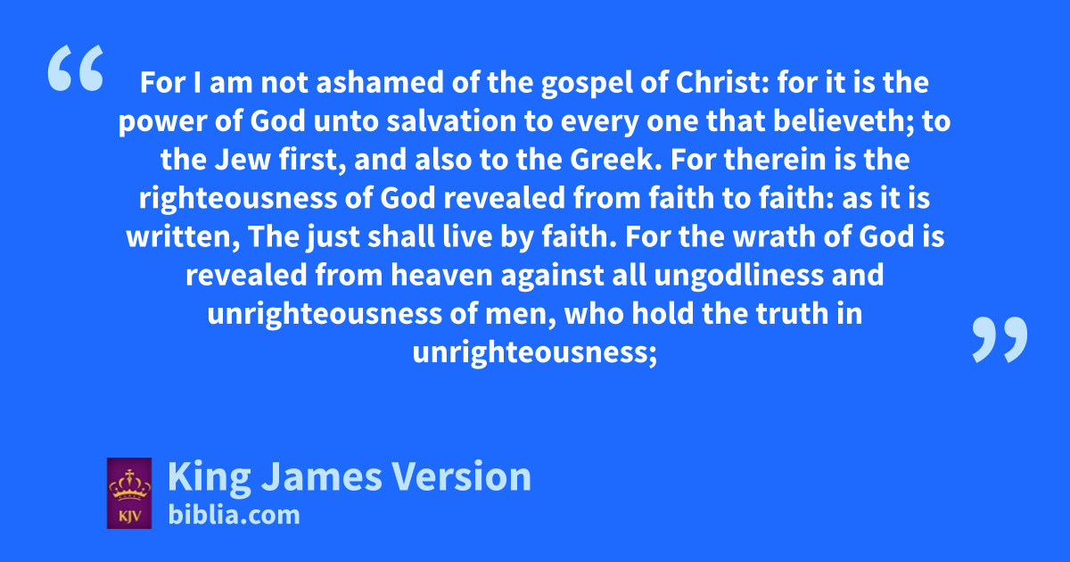 8 First, oI thank my God through Jesus Christ for you all, that pyour faith is spoken of throughout the whole world. 9 For qGod is my witness, rwhom I serve ||with my spirit in the gospel of his Son, that swithout ceasing I make mention of you always in my prayers; 10 tMaking request, if by any means now at length I might uhave a prosperous journey vby the will of God to come unto you. 11 For I long to see you, that wI may impart unto you xsome spiritual gift, to the end you may be established; 12 That is, that I may be comforted together ||with you by ythe mutual faith both of you and me. 13 Now I would not have you ignorant, brethren, that zoftentimes I purposed to come unto you, (but awas let hitherto,) that I might have bsome cfruit ||among you also, even as among other Gentiles. 14 dI am debtor both to the Greeks, and to the eBarbarians; both to the wise, and to the unwise. 15 So, as much as in me is, I am ready to preach the gospel to you that are at Rome also. 16 For fI am not ashamed of the gospel of Christ: for git is the power of God unto salvation to every one that believeth; to hthe Jew ifirst, and also to hthe jGreek. 17 For therein kis the righteousness of God revealed from kkfaith to faith: as it is written, lThe just shall live by faith.