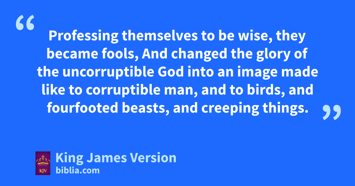 18 For mthe wrath of God is revealed from heaven against all ungodliness and unrighteousness of men, who hold the truth in unrighteousness; 19 nBecause othat which may be known of God is manifest ||in them; for God hath shewed it unto them. 20 For othe invisible things of him from the creation of the world are clearly seen, pbeing understood by the things that are made, even his eternal power and Godhead; ||so that they are qwithout excuse: 21 Because that, when they knew God, they glorified him not as God, neither were thankful; but rbecame svain in their imaginations, and their tfoolish heart swas darkened. 22 uProfessing themselves to be wise, they became fools, 23 And vchanged the glory of the uncorruptible God into wan image made like to corruptible man, and to birds, and wfourfooted beasts, and creeping things. 24 Wherefore xGod also gave them up to uncleanness through the lusts of their own hearts, yto dishonour their own bodies between themselves: 25 Who changed zthe truth of God into aa lie, and worshipped and served the creature ||more than the Creator, who is bblessed for ever. Amen.