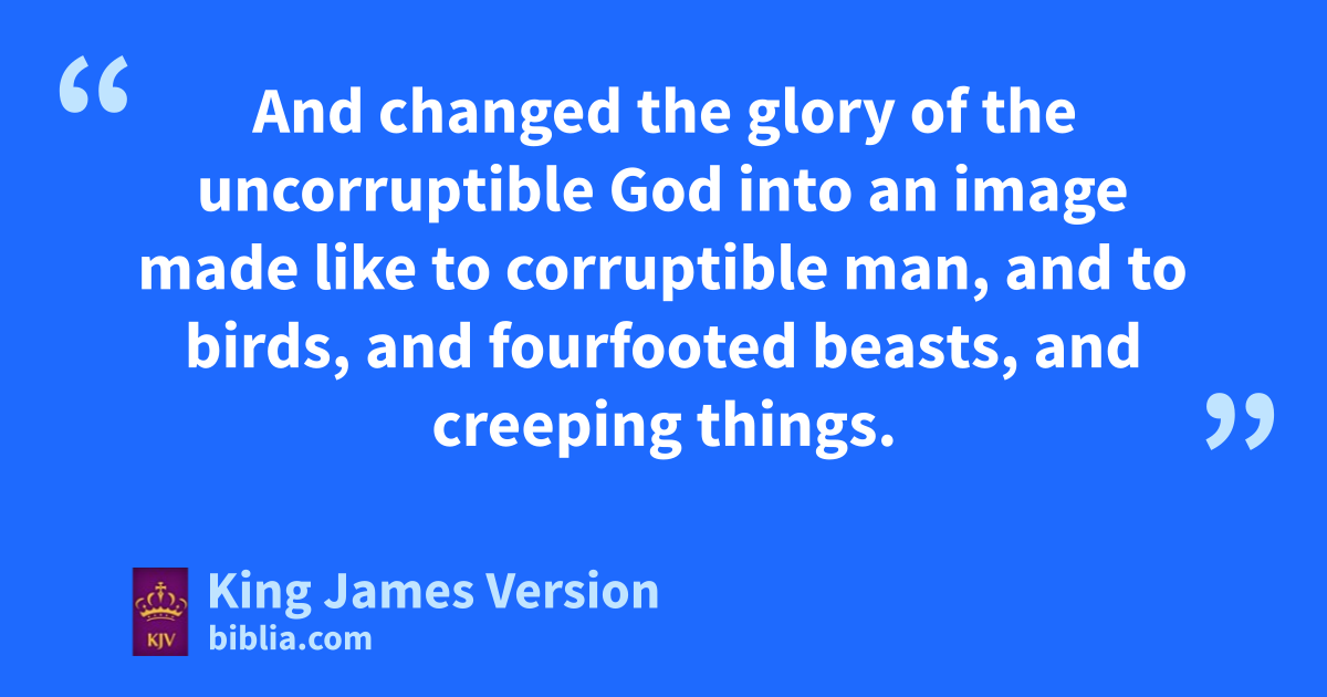 18 For mthe wrath of God is revealed from heaven against all ungodliness and unrighteousness of men, who hold the truth in unrighteousness; 19 nBecause othat which may be known of God is manifest ||in them; for God hath shewed it unto them. 20 For othe invisible things of him from the creation of the world are clearly seen, pbeing understood by the things that are made, even his eternal power and Godhead; ||so that they are qwithout excuse: 21 Because that, when they knew God, they glorified him not as God, neither were thankful; but rbecame svain in their imaginations, and their tfoolish heart swas darkened. 22 uProfessing themselves to be wise, they became fools, 23 And vchanged the glory of the uncorruptible God into wan image made like to corruptible man, and to birds, and wfourfooted beasts, and creeping things. 24 Wherefore xGod also gave them up to uncleanness through the lusts of their own hearts, yto dishonour their own bodies between themselves: 25 Who changed zthe truth of God into aa lie, and worshipped and served the creature ||more than the Creator, who is bblessed for ever. Amen.
