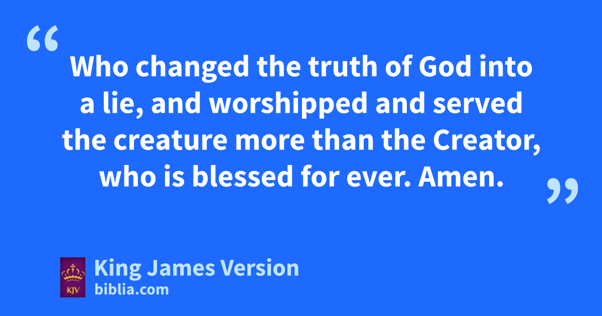 18 For mthe wrath of God is revealed from heaven against all ungodliness and unrighteousness of men, who hold the truth in unrighteousness; 19 nBecause othat which may be known of God is manifest ||in them; for God hath shewed it unto them. 20 For othe invisible things of him from the creation of the world are clearly seen, pbeing understood by the things that are made, even his eternal power and Godhead; ||so that they are qwithout excuse: 21 Because that, when they knew God, they glorified him not as God, neither were thankful; but rbecame svain in their imaginations, and their tfoolish heart swas darkened. 22 uProfessing themselves to be wise, they became fools, 23 And vchanged the glory of the uncorruptible God into wan image made like to corruptible man, and to birds, and wfourfooted beasts, and creeping things. 24 Wherefore xGod also gave them up to uncleanness through the lusts of their own hearts, yto dishonour their own bodies between themselves: 25 Who changed zthe truth of God into aa lie, and worshipped and served the creature ||more than the Creator, who is bblessed for ever. Amen.