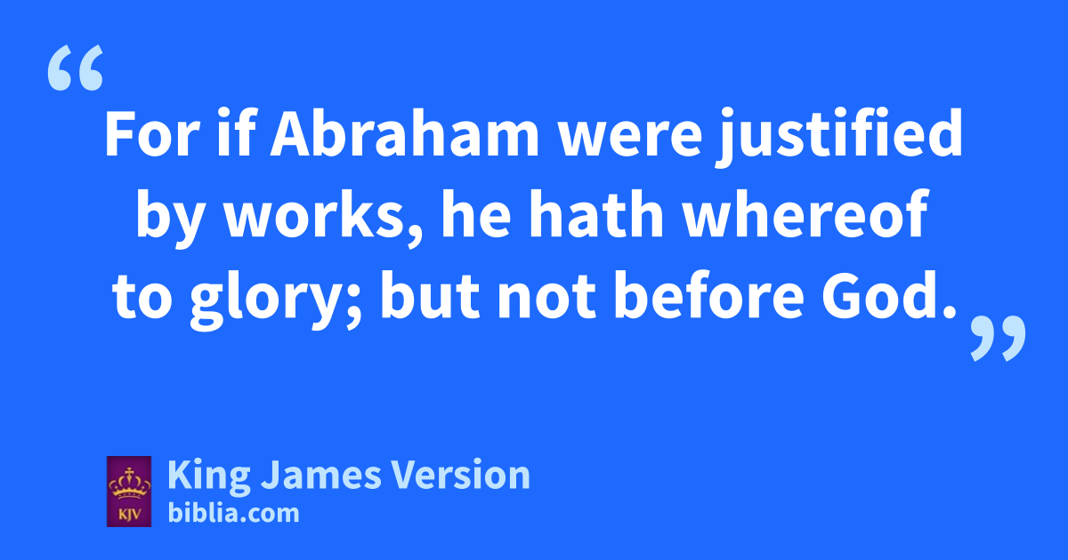 4 What shall we say then that Abraham aour father, as pertaining to the flesh, hath found? 2 For if Abraham were bjustified by works, he hath cwhereof to glory; dbut not before God. 3 For what saith the scripture? eAbraham believed God, and it was counted unto him for righteousness. 4 Now fto him that worketh is the reward not greckoned of grace, but of debt. 5 But to him that worketh not, but believeth on him that justifieth the ungodly, hhis faith is gcounted for righteousness. 6 Even as David also describeth the blessedness of the man, unto whom God gimputeth righteousness iwithout works, 7 Saying, jBlessed are they whose iniquities are forgiven, and whose sins are covered. 8 Blessed is the man to whom the Lord will not impute sin. 9 Cometh this blessedness then upon kthe circumcision lonly, or upon kthe uncircumcision also? for ewe say that faith was reckoned to Abraham for righteousness. 10 How was it then reckoned? when he was in circumcision, or in uncircumcision? Not in circumcision, but in uncircumcision. 11 And he received mthe sign of circumcision, na seal of the righteousness of the faith which he had yet being uncircumcised: that ohe might be the father of all them that believe, though they be not circumcised; that righteousness might be imputed unto them also: 12 And the father of circumcision to them who are not of the circumcision only, but who also walk in the steps of that faith of our father Abraham, which he had being yet uncircumcised. 13 For the promise, that he should be the pheir of the world, was not to Abraham, or to his seed, through the law, but through the righteousness of faith. 14 For qif they which are of the law be heirs, faith is rmade void, and qthe promise made of none effect: 15 Because sthe law worketh wrath: for twhere no law is, uthere is no transgression. 16 Therefore it is of faith, that it might be xby grace; yto the end the promise might be sure zto all the seed; not to that only which is of the law, but to that also which is of the faith of Abraham; awho is the father of us all, 17 (As it is written, bI have made thee a father of many nations,) ||before him whom he believed, even God, cwho quickeneth the dead, and calleth dthose things which be not as though they were. 18 Who against hope believed in hope, that he might become the father of many nations; according to that which was spoken, eSo shall thy seed be. 19 And being not weak in faith, he considered not his own body now fdead, gwhen he was about an hundred years old, neither yet hthe deadness of Sara’s womb: 20 He istaggered not at the promise of God through unbelief; but was strong in faith, giving glory to God; 21 And kbeing fully persuaded that, what he had promised, lhe was able also to perform. 22 And therefore it was imputed to him for righteousness. 23 Now mit was not written for his sake alone, that it was imputed to him; 24 But for us also, to whom it shall be imputed, if we believe non him that raised up Jesus our Lord from the dead; 25 oWho was delivered for our offences, and pwas raised again for our qjustification.