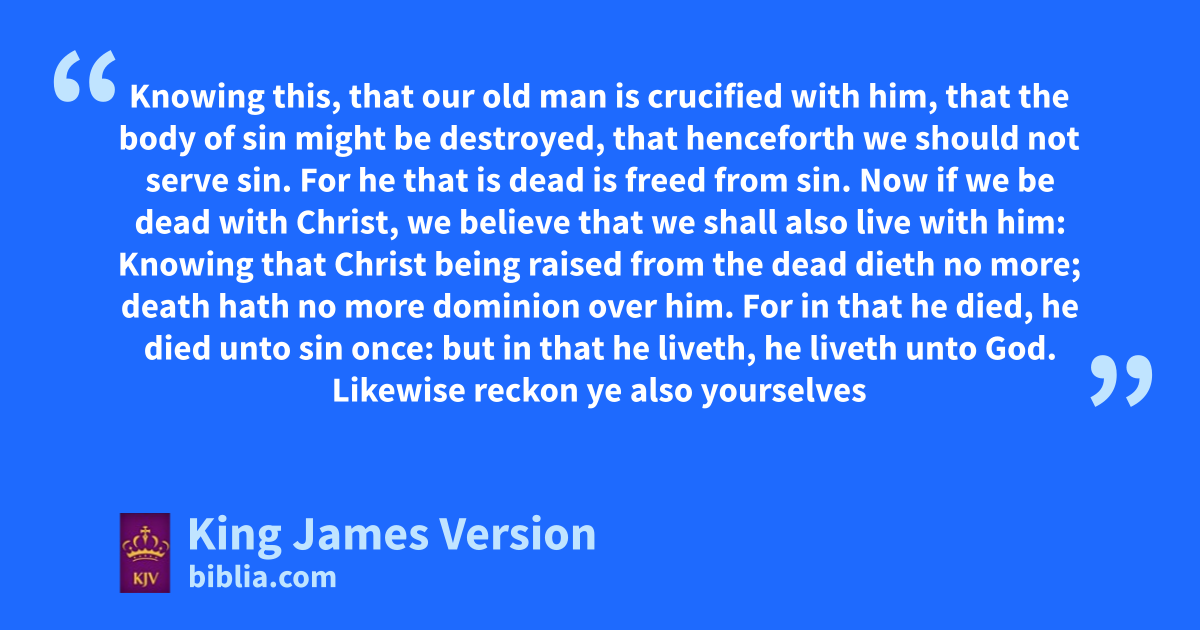 6 What shall we say then? aShall we continue in sin, that bgrace may abound? 2 cGod forbid. How shall we, that dare dead to sin, live any longer therein? 3 Know ye not, that eso many of us as ||were baptized finto Jesus Christ ||were gbaptized into his death? 4 Therefore we are hburied with him by baptism into death: that like as iChrist was raised up from the dead by kthe glory of the Father, even so lwe also should walk in newness of life. 5 For mif we have been nplanted together in the likeness of his death, we shall be also in the likeness of his resurrection: 6 Knowing this, that oour old man pis crucified with him, that qthe body of sin might be destroyed, that henceforth we should not serve sin. 7 For rhe that is dead is †sfreed from sin. 8 Now tif we be dead with Christ, we believe that we shall also live with him: 9 Knowing that uChrist being raised from the dead dieth no more; death hath no more dominion over him. 10 For in that he died, whe died unto sin xonce: but in that he liveth, he yliveth unto God. 11 Likewise reckon ye also yourselves to be zdead indeed unto sin, but alive aunto God through Jesus Christ our Lord. 12 Let not bsin therefore reign in your mortal body, that ye should obey it in the lusts thereof. 13 Neither cyield ye your members as †instruments of unrighteousness unto sin: but dyield yourselves unto God, as those that are alive from the dead, and your members as †instruments of righteousness unto God. 14 For bsin shall not have dominion over you: for eye are not under the law, but under grace.