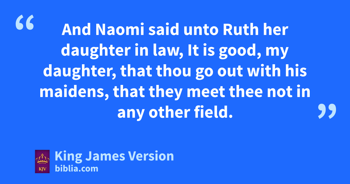 8 Then said Boaz unto Ruth, Hearest thou not, my daughter? Go not to glean in another field, neither go from hence, but abide here fast by my maidens: 9 Let thine eyes be on the field that they do reap, and go thou after them: have I not charged the young men that they shall not touch thee? and when thou art athirst, go unto the vessels, and drink of that which the young men have drawn. 10 Then she ffell on her face, and bowed herself to the ground, and said unto him, Why have I found grace in thine eyes, that thou shouldest take knowledge of me, seeing I am a stranger? 11 And Boaz answered and said unto her, It hath fully been shewed me, gall that thou hast done unto thy mother in law since the death of thine husband: and how thou hast left thy father and thy mother, and the land of thy nativity, and art come unto a people which thou knewest not heretofore. 12 hThe Lord recompense thy work, and a full reward be given thee of the Lord God of Israel, iunder whose wings thou art come to trust. 13 Then she said, ||kLet me find favour in thy sight, my lord; for that thou hast comforted me, and for that thou hast spoken †friendly unto thine handmaid, lthough I be not like unto one of thine handmaidens. 14 And Boaz said unto her, At mealtime come thou hither, and eat of the bread, and dip thy morsel in mthe vinegar. And she sat beside the reapers: and he reached her parched corn, and she did eat, and nwas sufficed, and left. 15 And when she was risen up to glean, Boaz commanded his young men, saying, Let her glean even among the sheaves, and †reproach her not: 16 And let fall also some of the handfuls of purpose for her, and leave them, that she may glean them, and rebuke her not. 17 So she gleaned in the field until even, and beat out that she had gleaned: and it was about an oephah of barley. 18 And she took it up, and went into the city: and her mother in law saw what she had gleaned: and she brought forth, and gave to her pthat she had reserved after she was sufficed. 19 And her mother in law said unto her, Where hast thou gleaned to day? and where wroughtest thou? blessed be he that did qtake knowledge of thee. And she shewed her mother in law with whom she had wrought, and said, The man’s name with whom I wrought to day is Boaz. 20 And Naomi said unto her daughter in law, rBlessed be he of the Lord, who hath not left off his kindness sto the living and to the dead. And Naomi said unto her, The man is near of kin unto us, ||one of our next kinsmen. 21 And Ruth the Moabitess said, He said unto me also, Thou shalt keep fast by tmy young men, until they have ended all my harvest. 22 And Naomi said unto Ruth her daughter in law, It is good, my daughter, that thou go out with this maidens, that they ||meet thee not in any other field. 23 So she kept fast by the maidens of Boaz to glean unto the end of barley harvest and of wheat harvest; and dwelt with her mother in law.