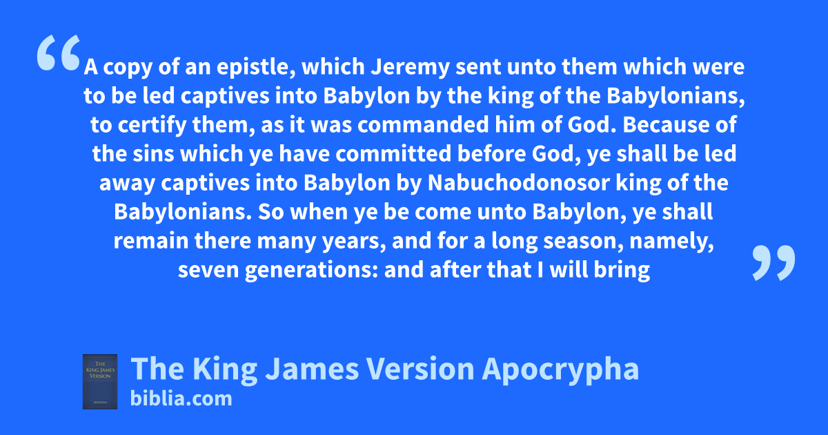 1 A copy of an epistle, which Jeremy sent unto them which were to be led captives into Babylon by the king of the Babylonians, to certify them, as it was commanded him of God.