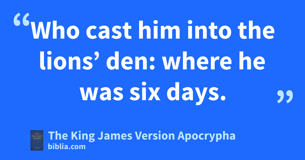 31 Who cast him into the lions’ den: where he was six days. 32 And in the den there were seven lions, and they had given them every day two carcases, and two sheep: which then were not given to them, to the intent they might devour Daniel.