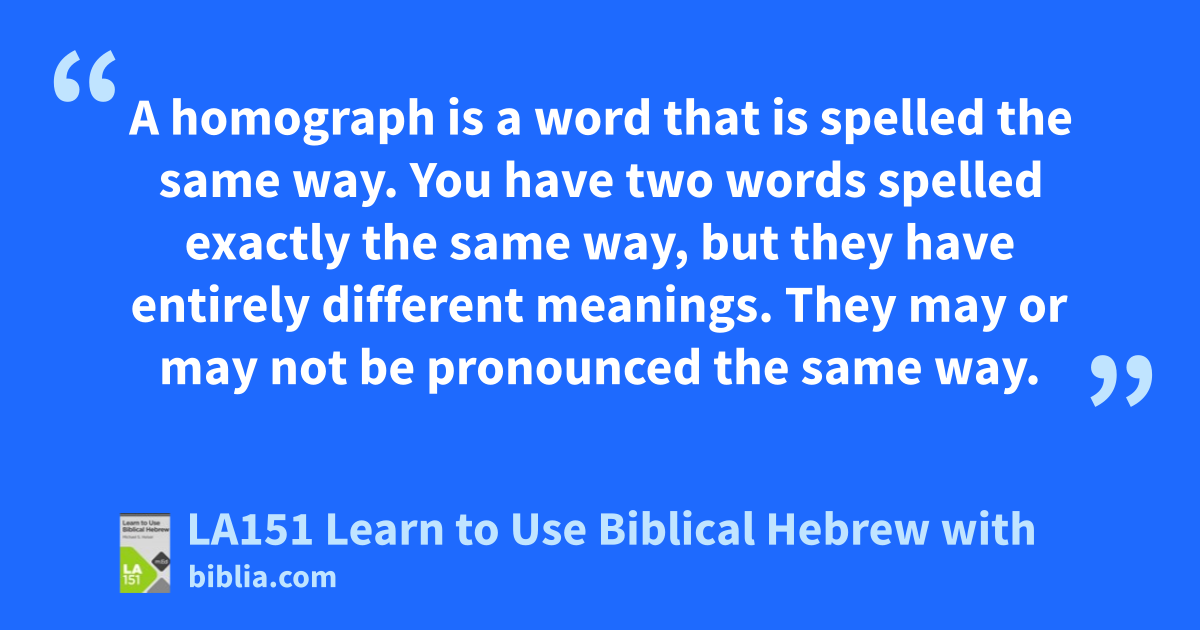 A homograph is a word that is spelled the same way. You have two words spelled exactly the same way, but they have entirely different meanings. They may or may not be pronounced the same way.