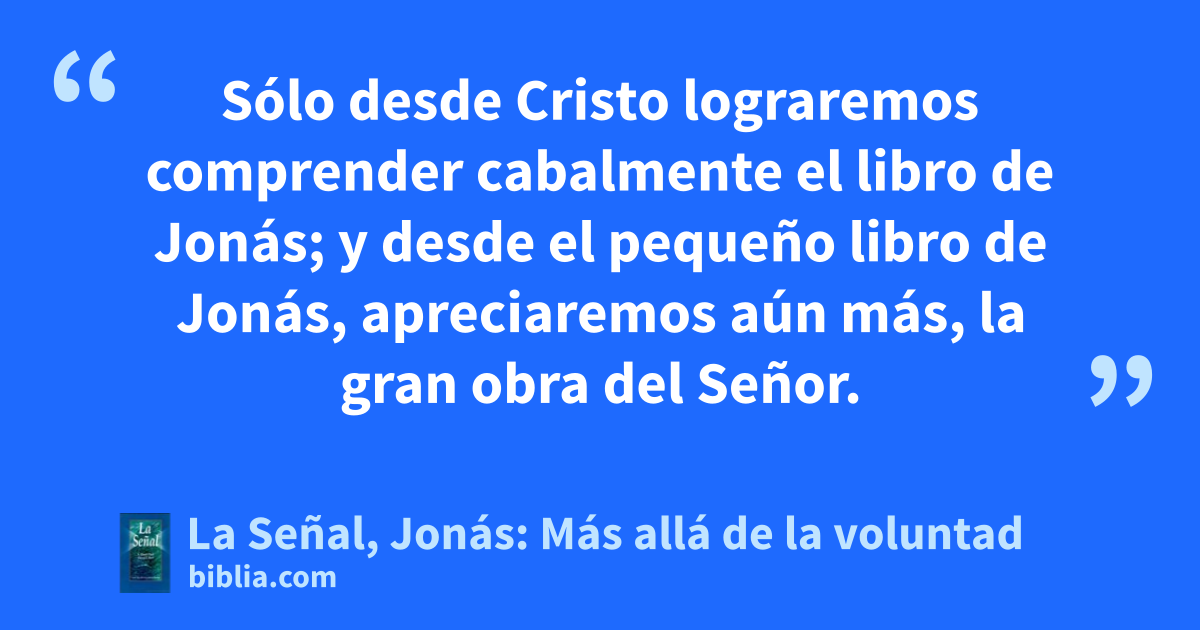 Sólo desde Cristo lograremos comprender cabalmente el libro de Jonás; y desde el pequeño libro de Jonás, apreciaremos aún más, la gran obra del Señor.
