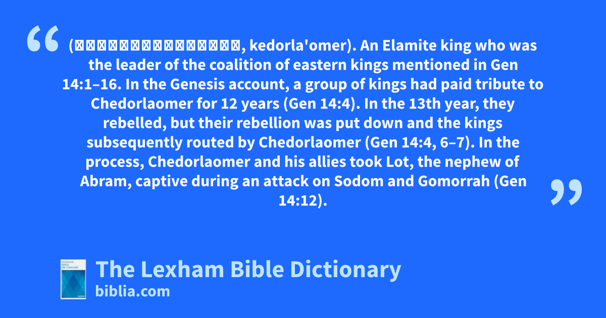 Chedorlaomer (כְּדָרְלָעֹ֫מֶר, kedorla'omer). An Elamite king who was the leader of the coalition of eastern kings mentioned in Gen 14:1–16.
