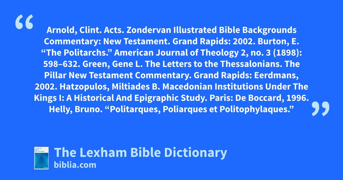 Horsley, G. H. R. “Politarchs.” Pages 419–31 in vol. 2 of The Book of Acts in its First Century Setting. Edited by David Gill and Conrad Gempf. Grand Rapids: Eerdmans, 1994.