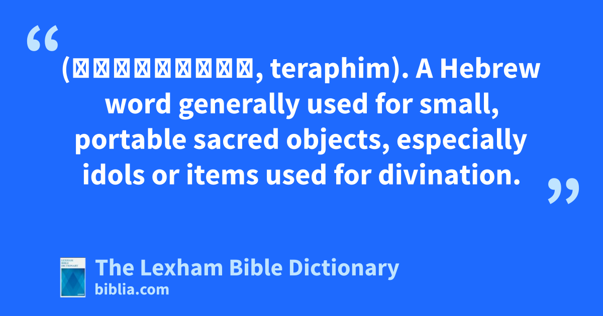 Teraphim (תְּרָפִים, teraphim). A Hebrew word generally used for small, portable sacred objects, especially idols or items used for divination.