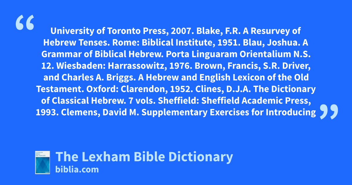 Holladay, William L. A Concise Hebrew and Aramaic Lexicon of the Old Testament. Grand Rapids, Mich.: Eerdmans, 1971.