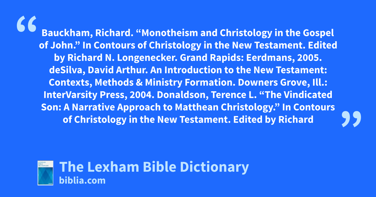 Donaldson, Terence L. “The Vindicated Son: A Narrative Approach to Matthean Christology.” In Contours of Christology in the New Testament. Edited by Richard N. Longenecker. Grand Rapids: Eerdmans, 2005.