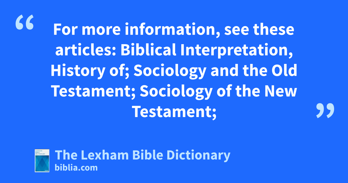 For more information, see these articles: Biblical Interpretation, History of; Sociology and the Old Testament; Sociology of the New Testament;